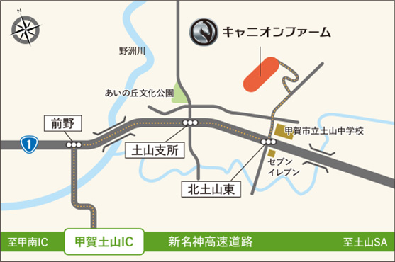 | 施設名 | キャニオンファーム土山 〒528-0211 滋賀県甲賀市土山町北土山282番地 TEL 0748-66-0013 FAX 0748-66-0096 |